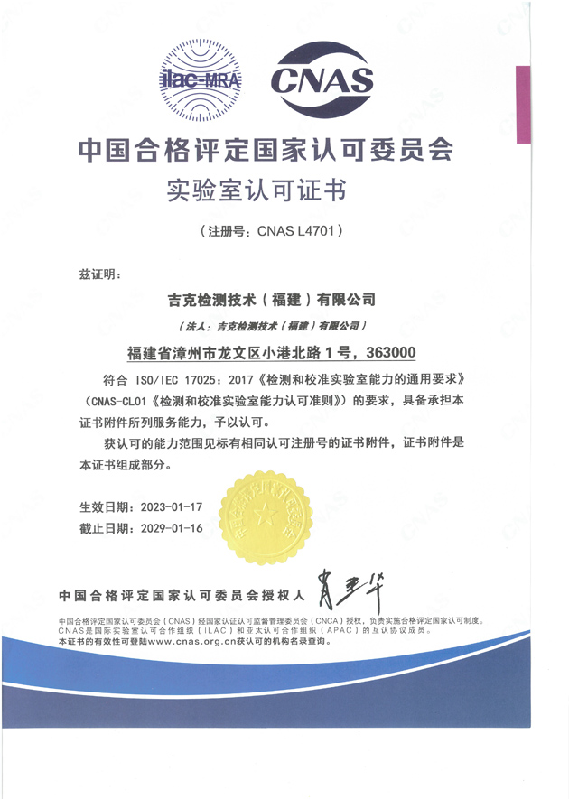 吉克檢測技術(福建)有限公司,位于福建省漳州市龍文區小港北路1號,于2019年8月注冊成立,是一家獨立的第三方檢測公司。公司已經通過檢驗檢測機構計量認證(CMA)、農產品質量安全檢測機構資質認證(CATL),獲得中國合格評定國家認可委員會(CNAS)認可。公司本著“嚴謹、規范、高效、協作”的原則和對客戶及社會高度負責的精神,充分利用本公司優質的檢測環境、先進的檢測設備和專業的技術人員,第一時間為客戶提供科學、公正、準確的檢驗檢測報告。       公司實驗室面積1100多平方米,儀器設備兩百多臺(套),固定資產一千多萬元,在職員工31人,技術人員中的中高級職稱及同等能力人數占60%以上。我們的服...